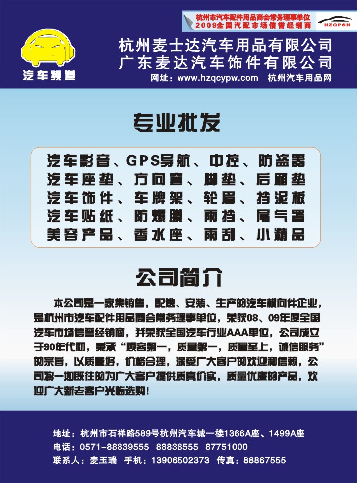 杭州麥?zhǔn)窟_(dá)汽車用品有限公司---封三