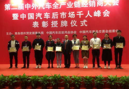 中國(guó)國(guó)際汽車商品交易會(huì)是商務(wù)部批準(zhǔn)的唯一國(guó)家級(jí)汽車產(chǎn)品國(guó)際化專業(yè)展會(huì)、唯一汽車全產(chǎn)業(yè)鏈商品貿(mào)易平臺(tái),是商務(wù)部重點(diǎn)引導(dǎo)支持的展會(huì). 本次展會(huì)同時(shí)舉行了第二屆中國(guó)汽車后市場(chǎng)優(yōu)秀經(jīng)銷商千人峰會(huì)暨表彰授牌儀式,經(jīng)商會(huì)推薦,商務(wù)部外貿(mào)發(fā)展局表彰授牌杭州浙江汽配城、杭州汽配電子商務(wù)產(chǎn)業(yè)園榮獲“優(yōu)秀市場(chǎng)”稱號(hào),杭州市汽車配件用品商會(huì)榮獲“優(yōu)秀團(tuán)體”稱號(hào),杭州車奇士汽車維修有限公司、杭州申令貿(mào)易有限公司、杭州恒生汽配有限公司、杭州顧德爾汽配有限公司、杭州捷捷貿(mào)易有限公司獲得18年百?gòu)?qiáng)連鎖稱號(hào);近四十家汽配經(jīng)銷商榮獲“優(yōu)秀經(jīng)銷商”稱號(hào)。