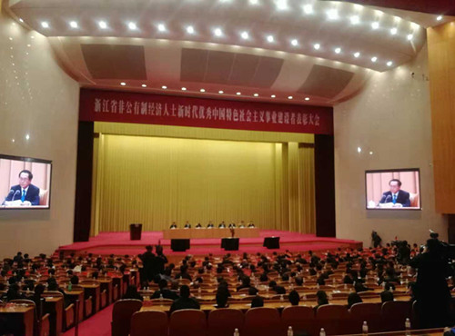 本次大會(huì)旨在深入貫徹黨的十九大精神,省委書記車俊同志宣傳改革開放四十年是黨十八大以來(lái)浙江省非公有制經(jīng)濟(jì)取得的成就,促進(jìn)非公有制經(jīng)濟(jì)健康發(fā)展,非公有制經(jīng)濟(jì)人士健康成長(zhǎng),引領(lǐng)廣大非公有制經(jīng)濟(jì)人士和新社會(huì)階層人士堅(jiān)定不移沿著“八八戰(zhàn)略”指引的路子走下去,大力弘揚(yáng)新時(shí)代浙商精神,勇立新時(shí)代改革開放的潮頭!