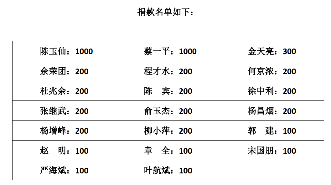 汽配商會(huì)捐贈(zèng)明細(xì)(按上報(bào)先后排列)