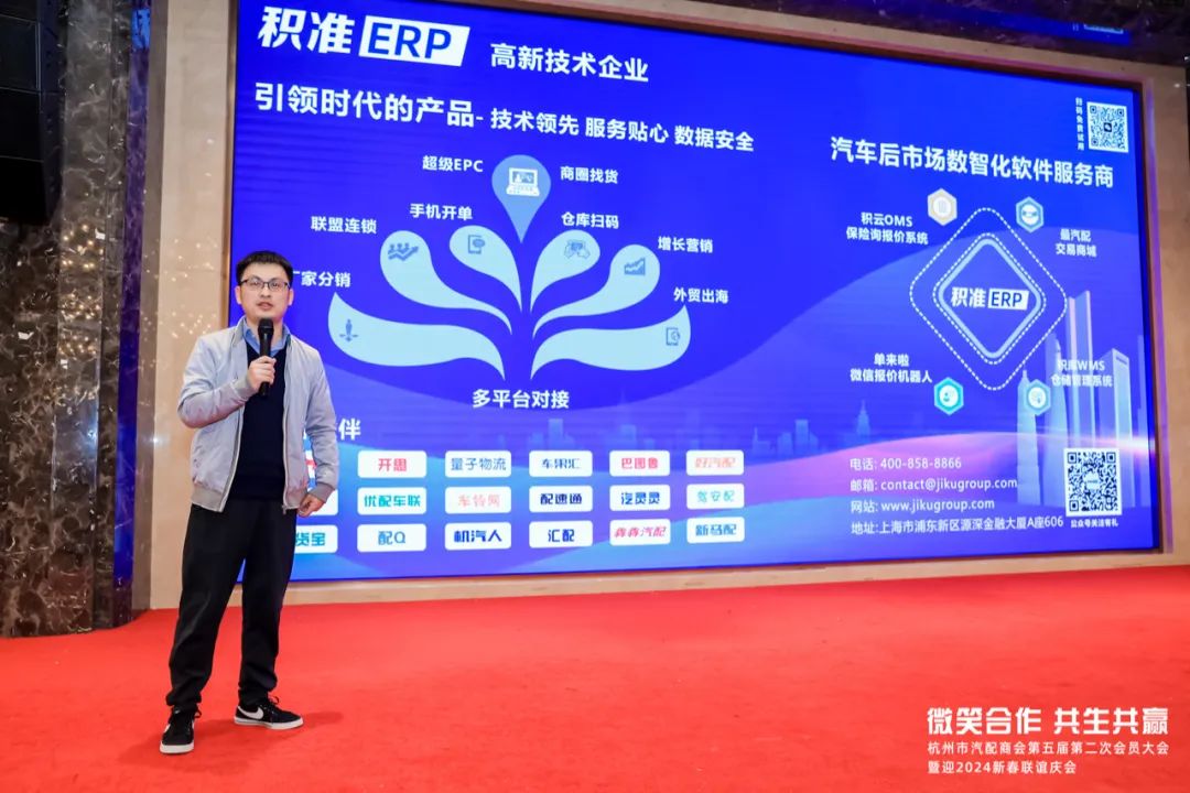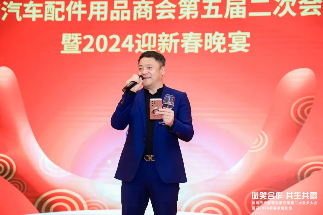 杭州市汽車配件用品商會會長何子軍上臺啟動(dòng)2024迎新春晚宴致辭,向全場來賓表達(dá)了最誠摯的祝福:愿世間所有的美好都恰逢其時(shí),愿歲月溫柔以待,愿在座的各位事業(yè)成功,而且保護(hù)青春。2024新年快樂!