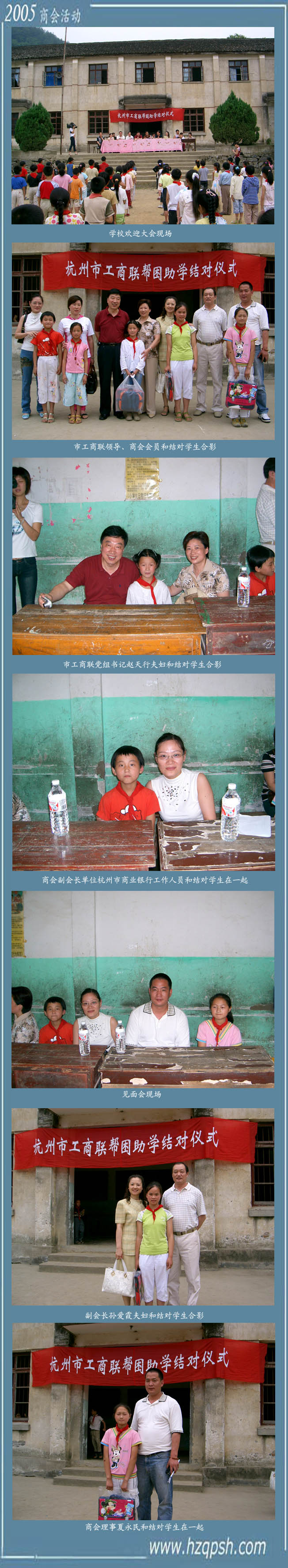 商會04年度赴桐廬莪山中心小學(xué)開展的“希望工程” 活動,在會員中引起了很大的反響,今年又有許多會員紛紛要求加入這項活動。在市工商聯(lián)、桐廬工商聯(lián)的積極聯(lián)系下,2005年6月10日市工商聯(lián)黨組書記趙天行帶隊,商會副會長孫愛霞、夏美紅,理事夏永民等會員一行赴桐廬分水中心小學(xué)開展“希望工程”活動。商會向?qū)W校送出了電腦和課外閱讀的書。會員們給小朋友帶去了許多學(xué)習(xí)用品,為結(jié)對的同學(xué)交納了學(xué)費。有些會員還把自己的子女帶去,讓孩子直接和山區(qū)學(xué)生接觸和交流。這是商會與桐廬結(jié)對的第二所小學(xué)。