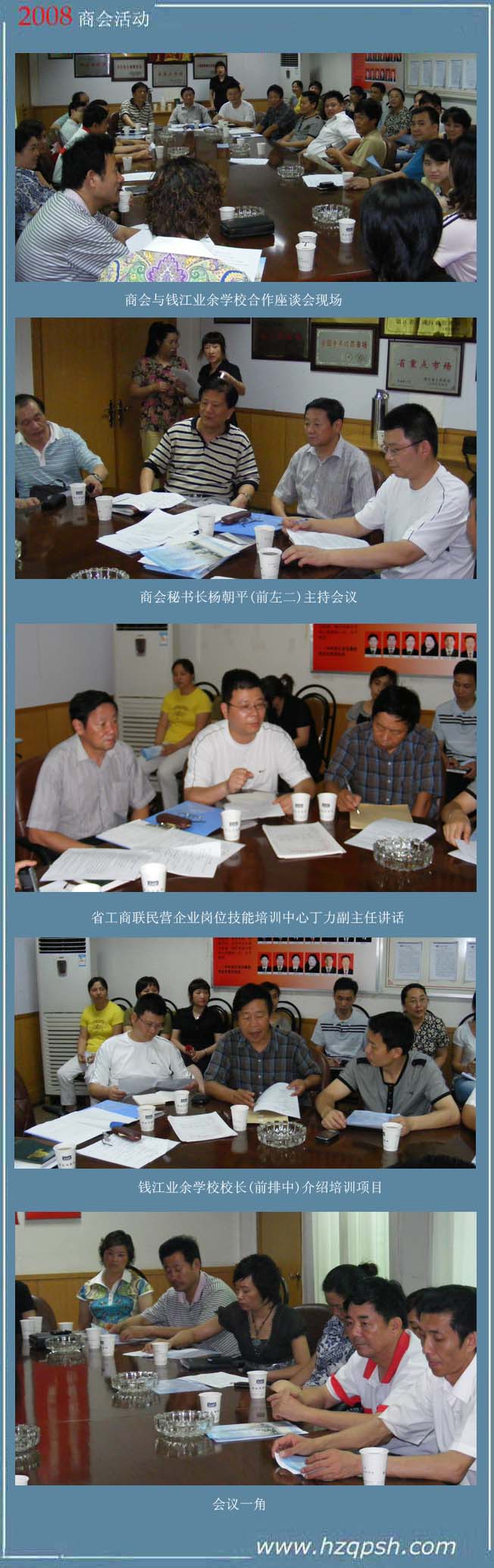 為了更好地為會(huì)員企業(yè)培訓(xùn)新員工、培訓(xùn)在職職工,2008年7月2日下午,商會(huì)與錢江業(yè)余學(xué)校在浙江汽配城三樓小會(huì)議室,召開了第2次合作項(xiàng)目座談會(huì)。參加會(huì)議的有省工商聯(lián)民營企業(yè)崗位技能培訓(xùn)中心丁力副主任、杭州錢江業(yè)余學(xué)校詹天佑、孫金發(fā)校長及商會(huì)三十余位會(huì)員。