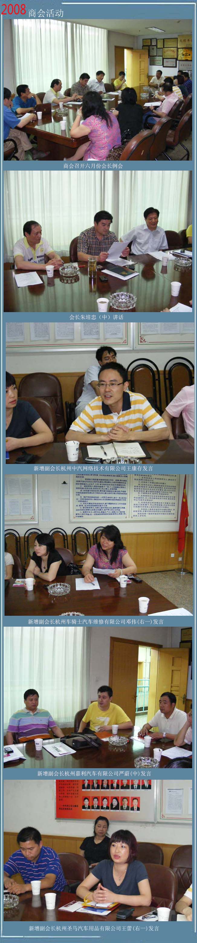 2008年6月19日商會(huì)在浙江汽配城三樓小會(huì)議室,召開六月份會(huì)長(zhǎng)例會(huì)。會(huì)議由楊朝平秘書長(zhǎng)主持。會(huì)長(zhǎng)朱培忠、副會(huì)長(zhǎng)唐柏林、蔡一平、郭銘華、李振高、王康明、夏美紅、潘桂萍、呂國南、華天渠出席了會(huì)議。