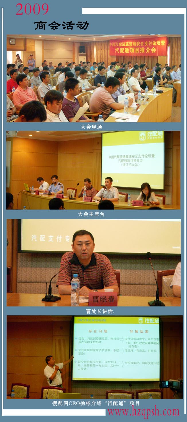 2009年6月12日聯(lián)合大眾公司聯(lián)合浙江省汽車維修行業(yè)協(xié)會(huì)、杭州市汽車配件用品商會(huì),在紹興運(yùn)管局會(huì)議室召開汽配通領(lǐng)域開展第三方支付,“汽配通’項(xiàng)目推薦會(huì)。這是汽配通’項(xiàng)目開始在浙江省內(nèi)啟動(dòng)后的第二站。