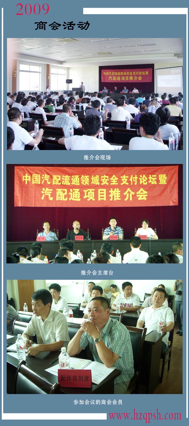 “汽配通’項(xiàng)目湖州推薦會(huì)于2009年6月25日在湖州市道路運(yùn)輸管理處會(huì)議室召開(kāi)。這是“汽配通’項(xiàng)目開(kāi)始在浙江省內(nèi)啟動(dòng)后的第三站。
