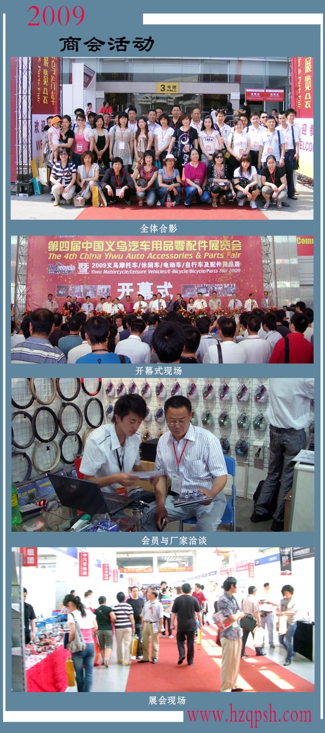 第四屆中國義烏汽車用品零配件展于2009年5月16日在義烏梅湖會展中心開幕。中國汽車零部件工業(yè)公司總裁陳康仁、浙江省汽車用品協(xié)會會長沈中明等嘉賓,以及義烏市政府相關(guān)領(lǐng)導(dǎo)出席了開幕儀式。